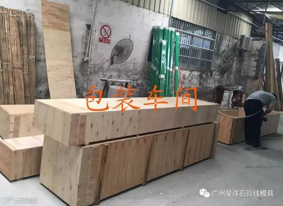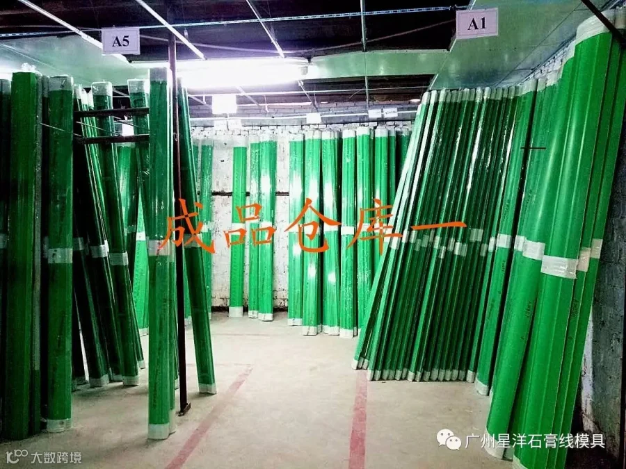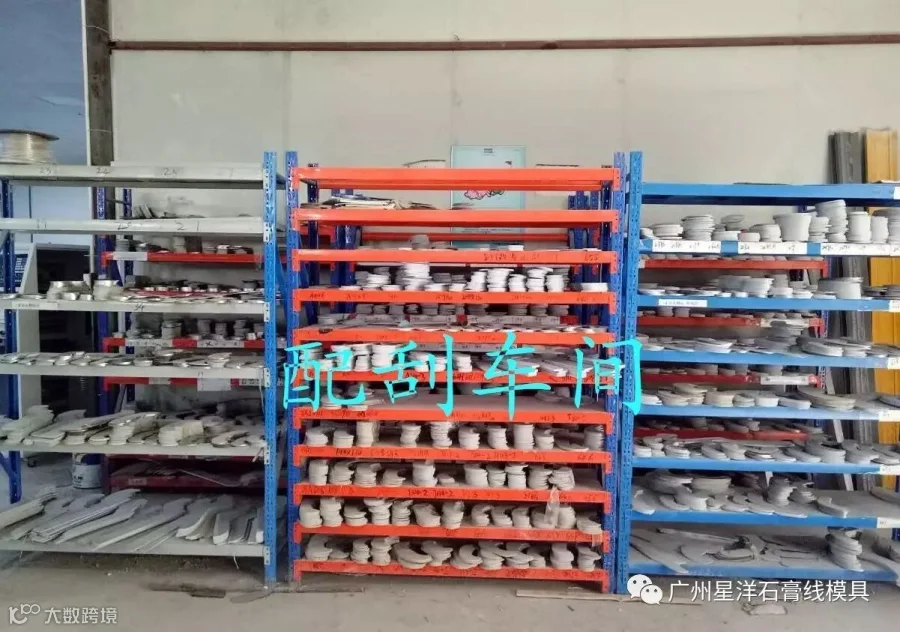 在打包区后面,有一个作用不可忽视的区域,那就是刮板配对区。每一个产品对应的刮板不同,小小的刮板可以让你的石膏线控制在刚刚好的厚度,在保证质量的同时又控制了成本,不造成一丝一毫的浪费。