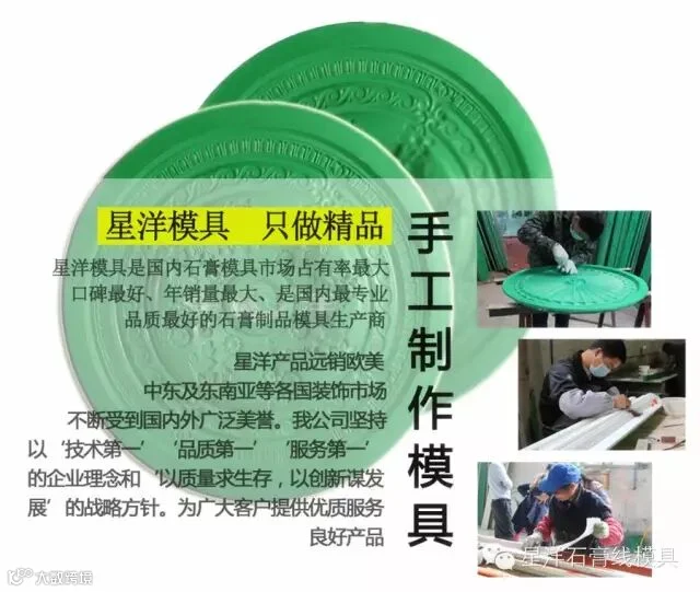 星洋石膏线模具生产的石膏线条、角花、灯盘、梁托、罗马柱、浮雕艺术人像等产品,表面光滑,花纹清晰,立体感强,强度高,施工性能优良。