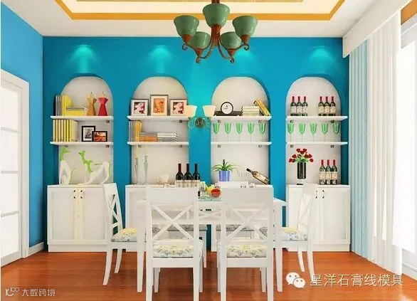 摆脱单调的餐边柜,蓝色拱门的韩式田园风餐厅,满满的都是浪漫。