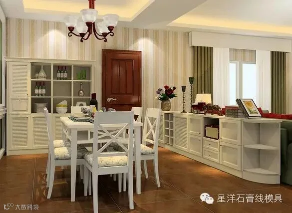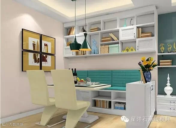 小餐厅的墙面怎样才不单调?内嵌式的装饰柜别有一番情调。