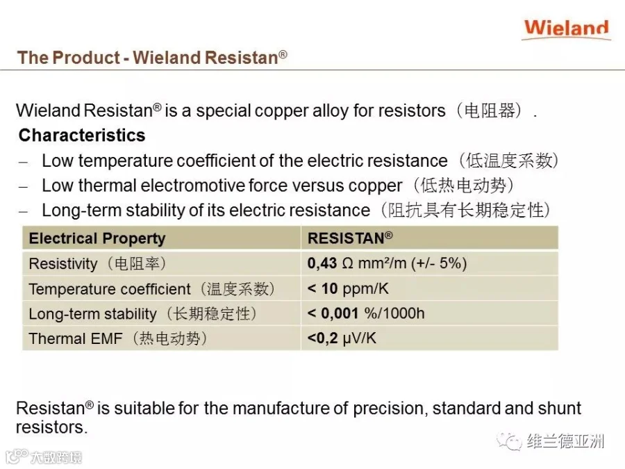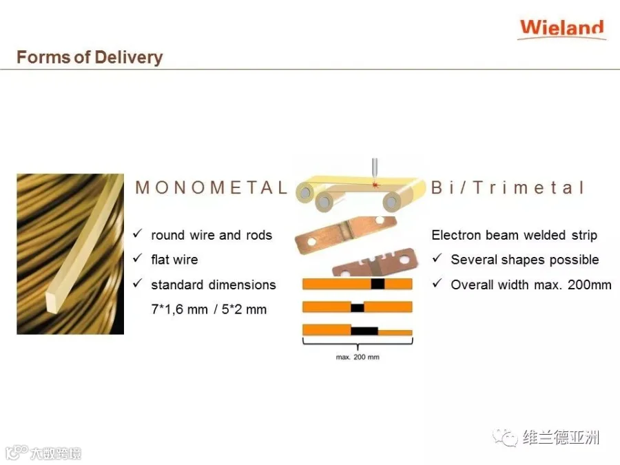 维兰德集团总部设在德国,是全球领先的铜及铜合金半成品制造商。维兰德的铜合金产品享誉世界:铜带、铜板、铜管、铜棒、铜线和异型材料,以及轴承,衬套,翅片管和热交换器材料,是汽车工业、电子、电讯、半导体、建筑和其他诸多行业的重要原材料。