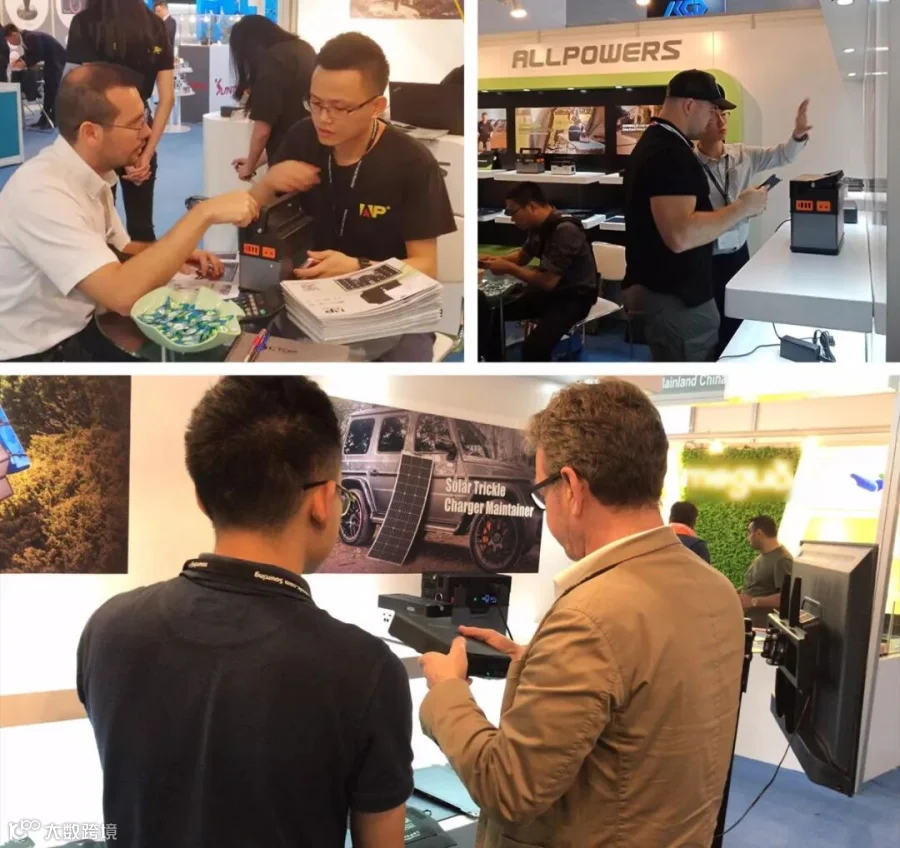 其中搭载智能功能的储能系统引来不少客户的兴趣,各国的客人与工作人员热烈交流中。