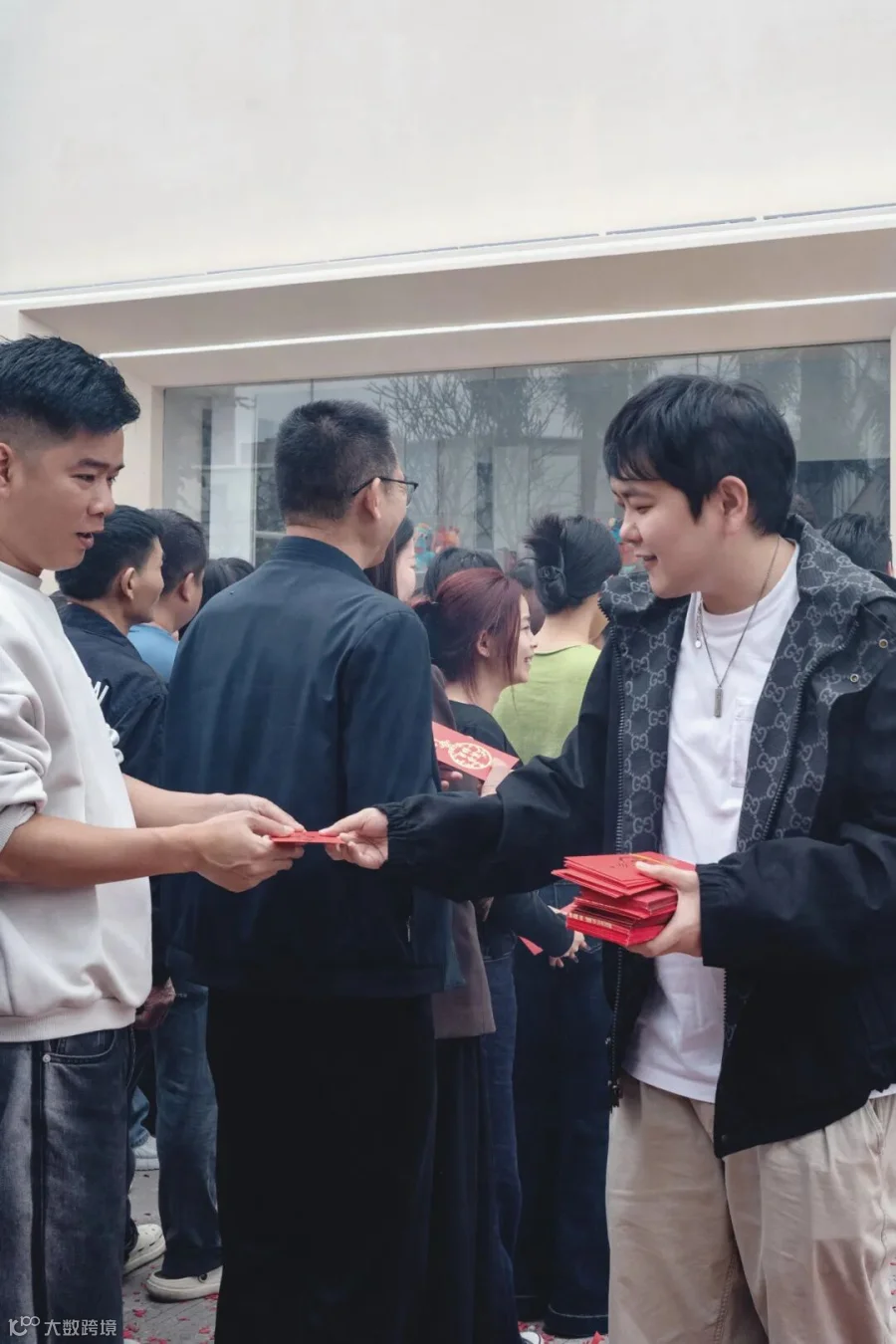 红包派发场面热火朝天,由我们郎总、王总、肖总以及栩总一一送至每位员工手中。
