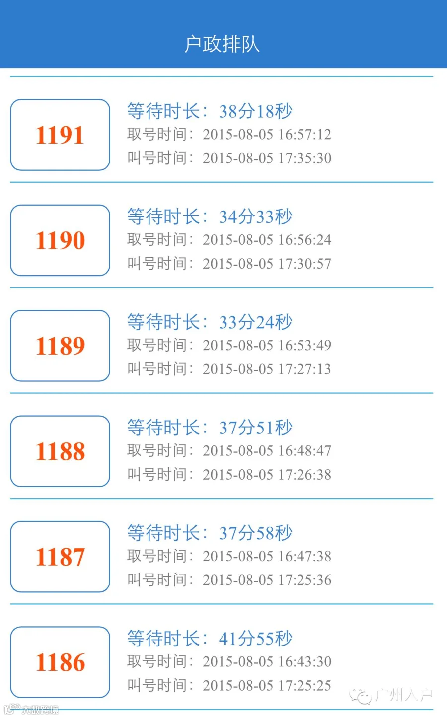 市各级综合办证厅的户政业务办理排队情况,仅供参考: