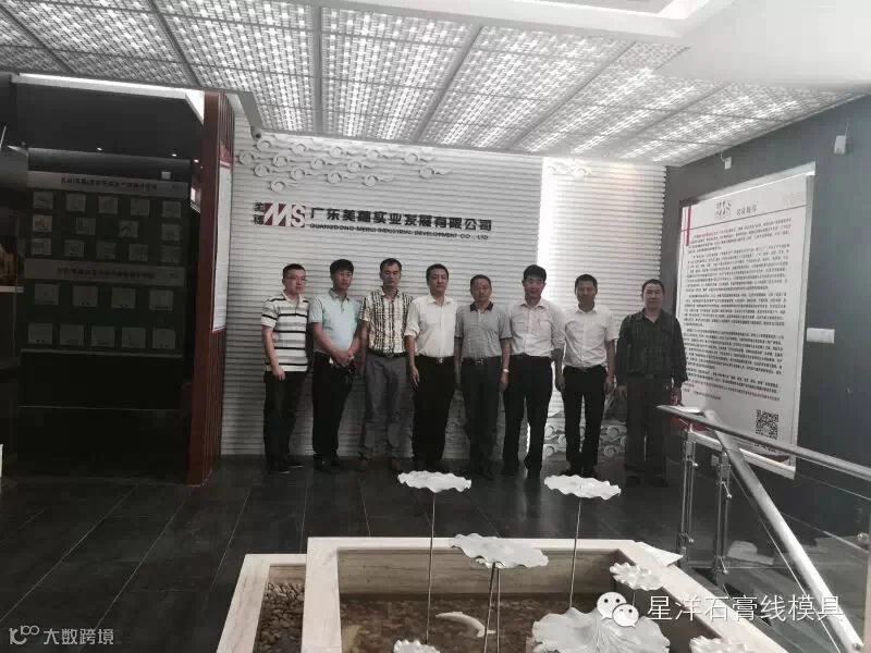 参观完美穗公司作为工装行业的优秀企业,给来访人员带来的震撼视觉的艺术效果和功能性的体验之后,在所有领导人的陪同下王书记和顾书记,随后走进广州市星洋天然石膏制品装饰材料有限公司考察石膏线玻璃钢模具和石膏制品为主的优秀企业。