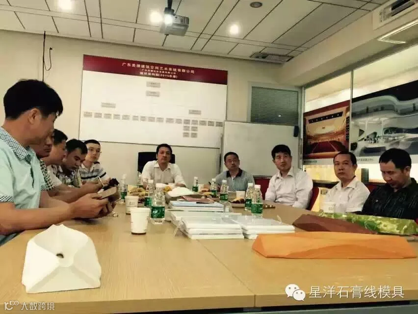 在星洋公司董事长邱海云先生的带领下,参观专业加工石膏线流水线设备车间,邱董详细的讲解了流水线运营情况以及荣获国家专利证书的机械模具的优点。机械模具,目前是国内唯一一家以玻璃钢、铝合金、PVC三种材质研发出的花纹款式。走进生产车间,参观石膏制品晾晒区,了解玻璃钢模具如何从原材料到底模等整个制作流程。星洋玻璃钢模具专研、严格把控模具生产加工的每一道工序。让来访人员真正认识了解到,星级酒店、别墅洋房、个人家装使用的石膏装饰制品,是如何从石膏粉到加工成形的整个生产工序。