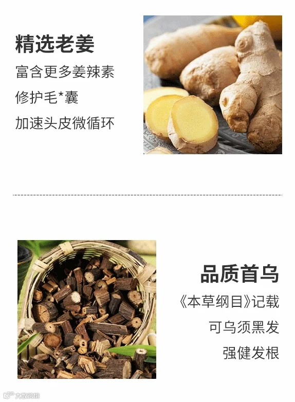 主要成分:生物糖胶-1、姜水提取物、何首乌提取物、刺阿干树仁油、14种植物精油。