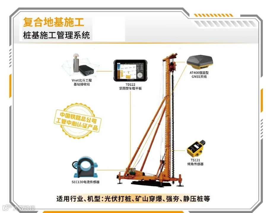 桩基施工管理系统采用北斗卫星定位技术,融合通讯技术、物联网和计算技术,在工业级车载终端上为机手提供精准的厘米级桩位引导,实时呈现施工过程中的关键数据,有效提升成桩合格率,使得施工过程不再依赖于传统的测量人员放样、旁站观测和扶尺人员,从而大幅减少了人力成本,提升了施工效率和质量,并降低了事故风险。