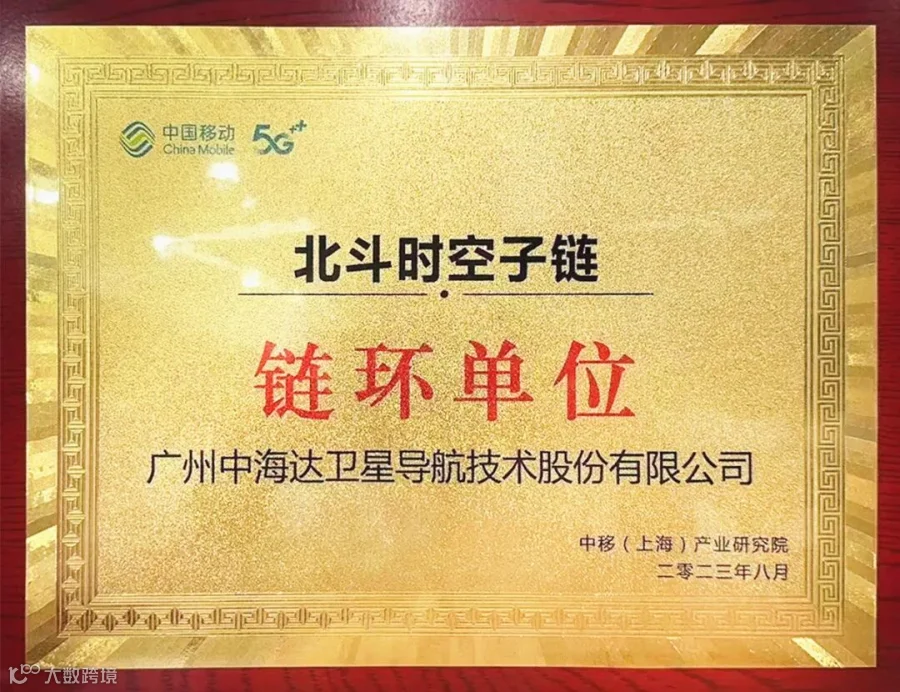 ▲中国移动“北斗时空子链”链环单位牌匾