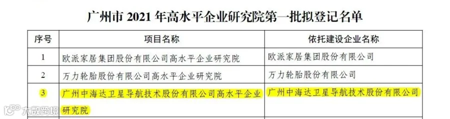 近日,根据《广州市推进高水平企业研究院建设行动方案(2020年-2022年)》(穗科规字〔2020〕7号)有关规定,中海达通过了政府科技行政主管部门逐层审批、专家组现场答辩、考察核实等程序,获得广州市首批高水平企业研究院资格认定,同时也是广州市空间信息行业首家获得该认定的企业。