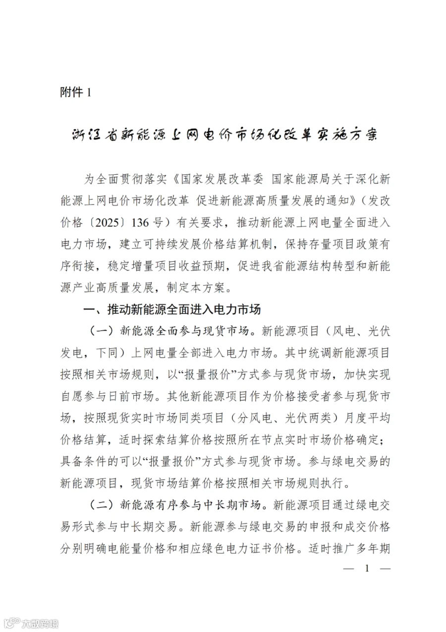 附件:1.浙江省新能源上网电价市场化改革实施方案