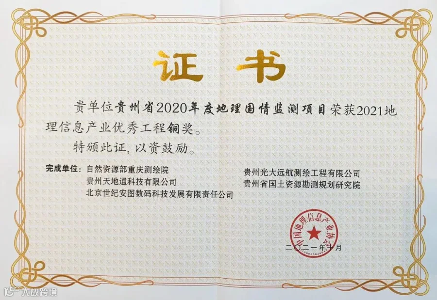 在刚拉下帷幕的2021中国地理信息产业大会上,天地通入选“百强企业”,同时其与合作伙伴共同完成的项目获地理信息产业优秀工程铜奖。