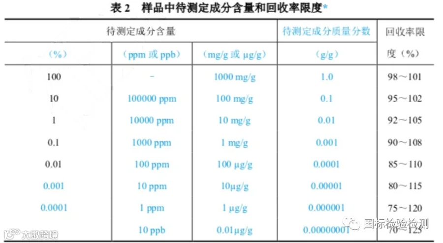 *此表源自 AOAC《Guidelines for Single Laboratory Validation of Chemical Methods for Dietary Supplements and Botanicals》