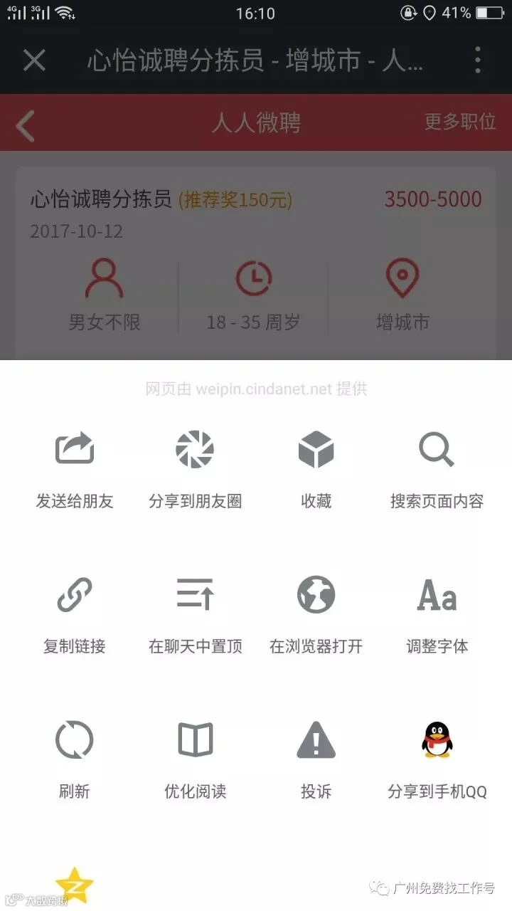 4、如果想要挣取推广金,选择挣取推荐奖,关注二维码,如果你已经关注和注册就不要选择挣取推荐奖,直接点又上角的点,选择分享朋友圈,朋友,只要他们又去报名上班,就有50-150不等的红包。