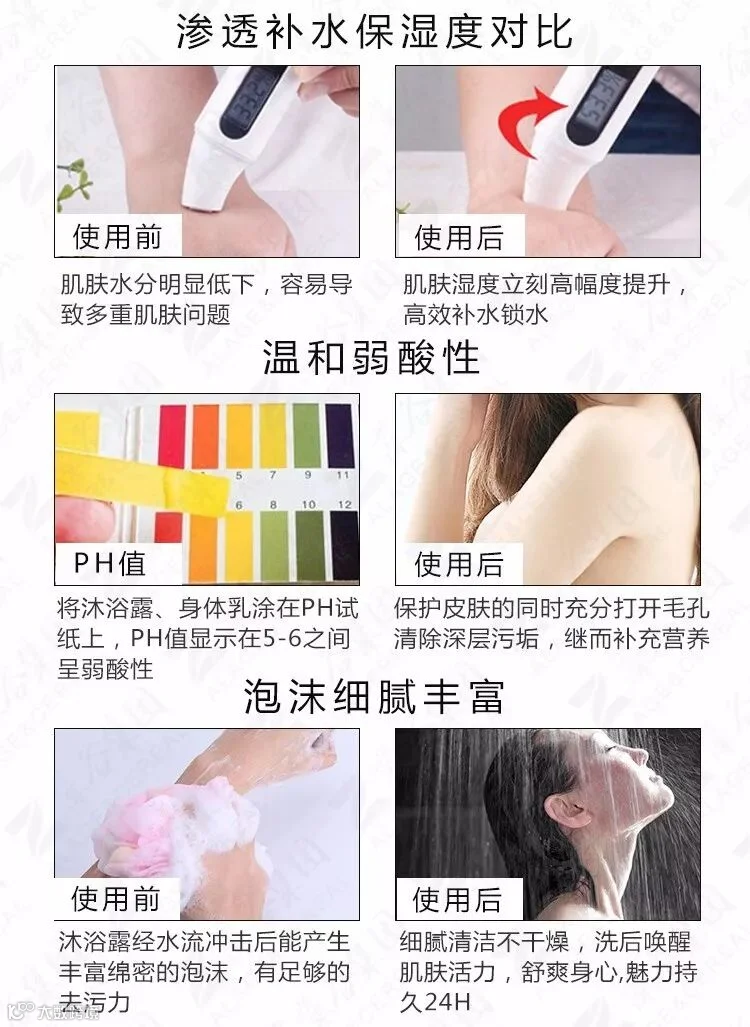 保湿效果、PH值呈现、泡沫是否细腻丰富