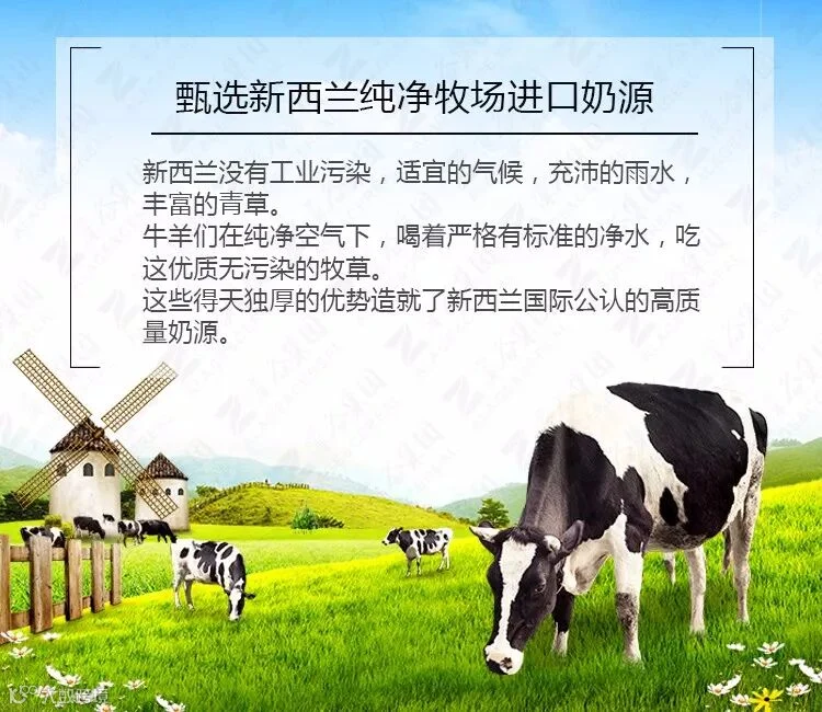 甄选新西兰纯净牧场进口奶源,天然无污染