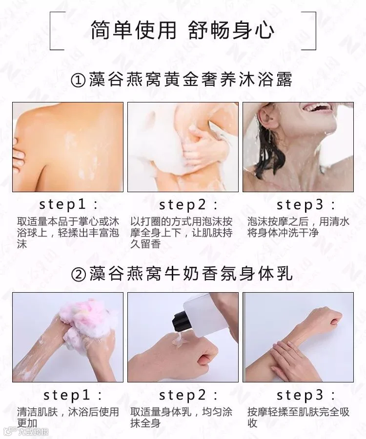 挤上燕窝黄金奢养沐浴露,揉出丰富绵密的泡泡