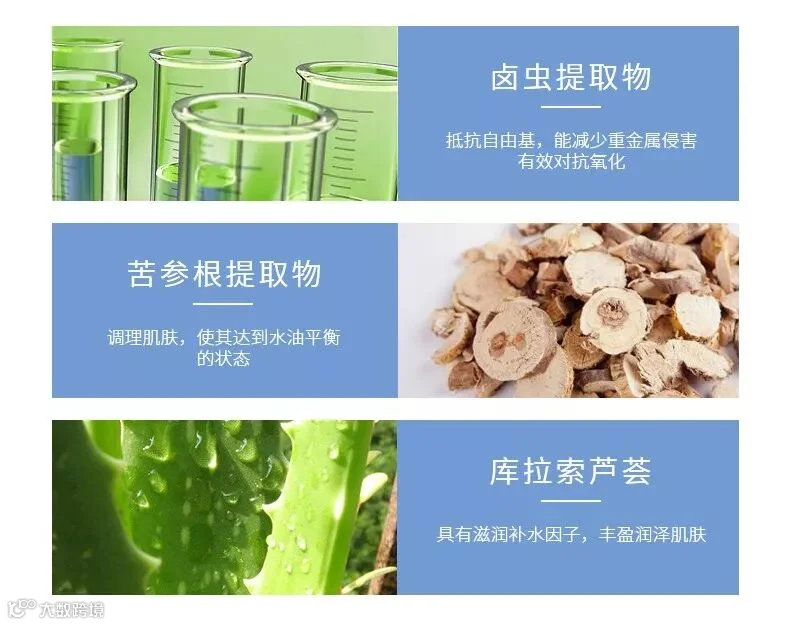 库拉索芦荟提取物 、苦参根提取物等