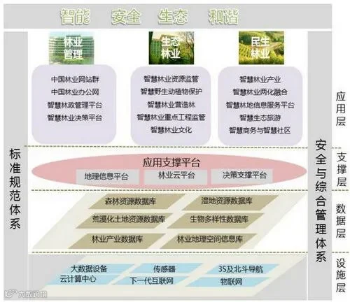 ——林业管理服务协同化。信息共享、业务协同是林业智慧化发展的重要特征,就是要使林业规划、管理、服务等各功能单位之间,在林权管理、林业灾害监管、林业产业振兴、移动办公和林业工程监督等林业政务工作的各环节实现业务协同,以及政府、企业、居民等各主体之间更加协同,在协同中实现现代林业的和谐发展。