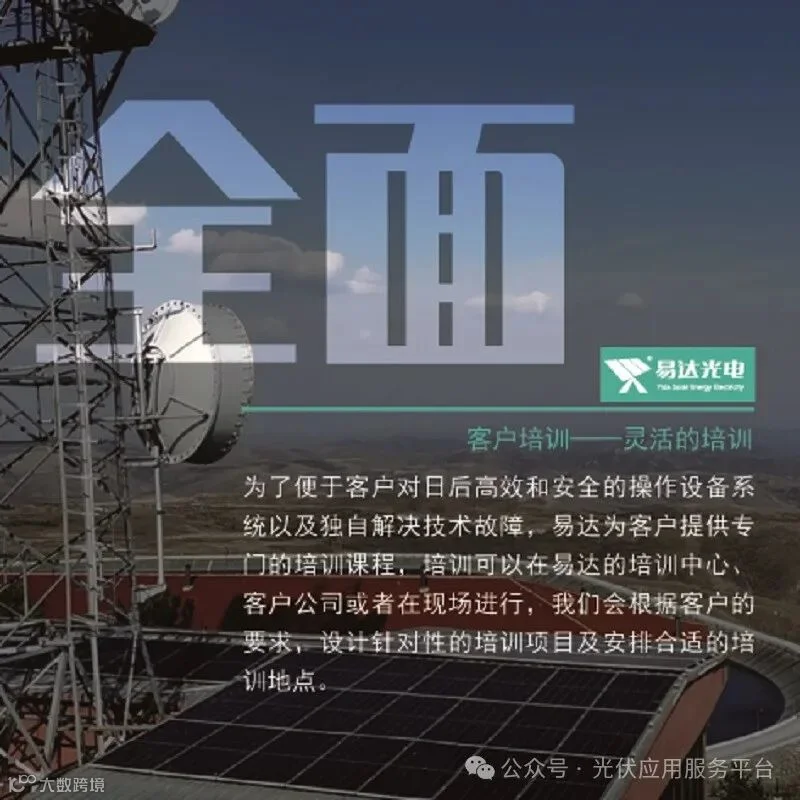 杭州易达光电有限公司专注太阳能光伏发电20多年,厂家直销太阳能发电设备,批发太阳能板,胶体电池,控制器,逆变器,光伏支架,太阳能路灯ups蓄电池,在全国东北辽吉黑西北新疆内蒙大区建立了本地化仓储运营,整体构建一站解决方案设计,快速交接。