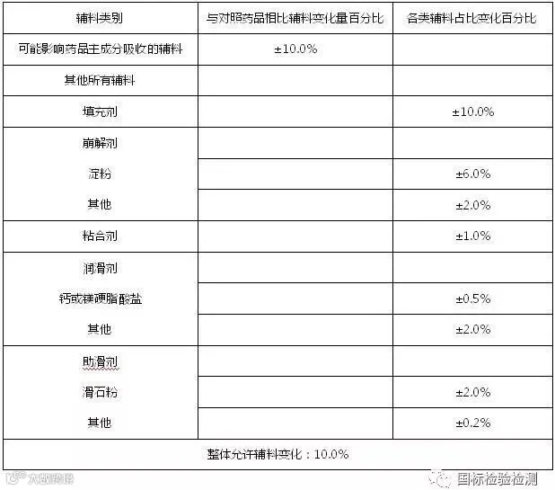 对于BCSⅠ类的药品,辅料的质量和数量可以在允许的范围内变动,但是会影响药物吸收的辅料要与对照药品具有相同的质量和相似的数量,变化不超过±10%。
