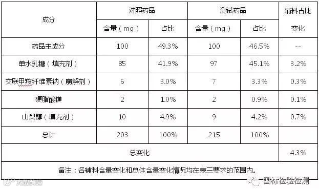 报告应该含有全部的辅料和他们的质量情况,如果有需要,测试药品和对照药品中辅料含量的不同也应该包括在内。