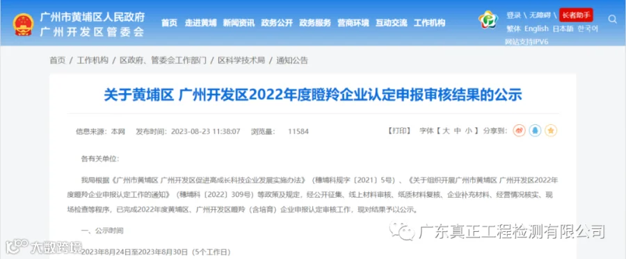 近日,广州市黄埔区科学技术局公示2022年度广州市黄埔区 广州开发区瞪羚企业名单,广东真正成功获得2022年度瞪羚企业认定,这也是公司第三次获得瞪羚企业认定。