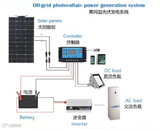 离网光伏系统一般由太阳电池组件组成的光伏方阵、太阳能充放电控制器、蓄电池组、离网型逆变器、直流负载和交流负载等构成。