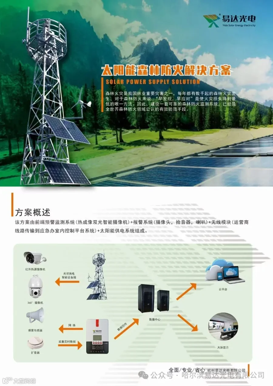 太阳能供电解决方案具备良好的可靠性、安全性与易用性,利用发电+储能为外部负载供电而不依赖电网而独立运行的发电系统。可就近发电,就近使用,避免了集中建设的场地环境限制因素,具有建设灵活的特质。普通电网布线繁琐,而通过太阳能发电给负载供电,同时给蓄电池组充电,可高效、安全、稳定的构建一体化的太阳能供电系统。可为安防监控、森林边防、农业水利、电力等应用领域,处于偏僻山区、海洋岛屿等基础设施建设较差的无电或供电困难场地区,提供清洁可靠的电力能源供给,不仅可有效减少碳排放,还从根源上解决了特定场景下的能源供应问题。