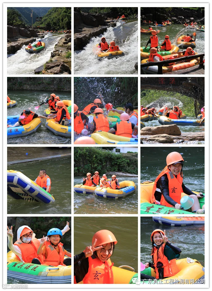 风轻云淡览云溪,青山白水勇漂流。在享用当地特色美食后,大家乘车前往清远玄真古洞生态度假区,开启了秋天里的第一次漂流。景色怡人,怪石嶙峋的漂流峡谷激流不断,巨浪奔腾。驾驶橡皮艇在时而湍急时而平缓的水流中顺流而下,沿途与其他橡皮垫不期而遇,少不了一场激烈的水战。欢笑声、惊叫声,此起披伏,充满了整个山谷。这一刻,尘封已久的童心被唤起,肆意欢笑,大声呼喊;这一刻,泼水狂欢精彩呈现,相逢何必曾相识,只为快乐莫言它;这一刻,万丈豪情不畏险,乘风破浪勇往前。