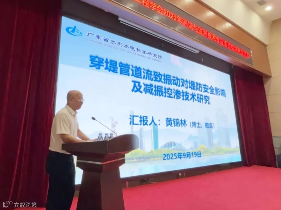 广东省水利水电科学研究院副总工程师黄锦林教授级高工作了《穿堤管道流致振动对堤防安全影响及减振控渗技术研究》的报告。针对穿堤管道流致振动威胁堤防安全的技术难题,他深入阐述了团队开展的系列研究:包括穿堤管道振动特征信息提取、振源特性及传递规律分析、振动影响范围数值模拟等基础研究,基于模型试验的管道振动特性及减振措施研究,以及振动对堤防渗流与边坡稳定的影响分析、管道运行安全动力学监测预警技术探讨等应用研究。最终提出的穿堤管道减振控渗措施及运行安全监测预警技术,为穿堤管道工程的长期安全运行提供了坚实的技术保障。