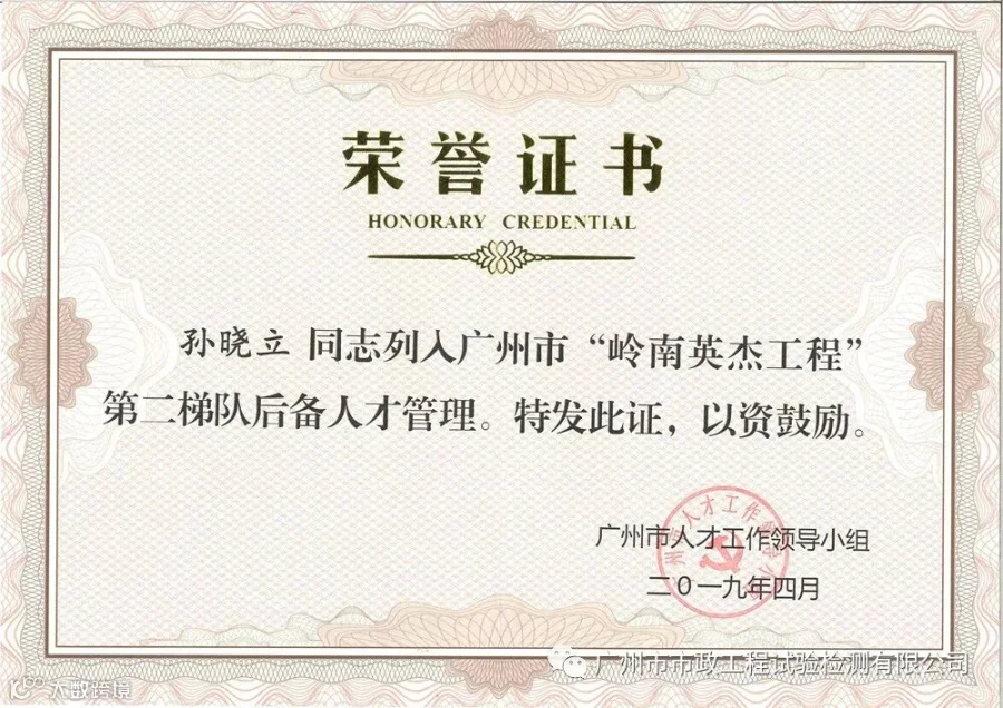 热烈祝贺我司的孙晓立同志成功入选“岭南英杰工程”后备人才队伍!该项目由广州市委组织部、广州市人社局联合组织开展,计划通过“岭南英杰工程”,力争用5年时间,培养20名位于国际科技前沿的中国科学院、中国工程院院士后备人才(以下简称“第一梯队”),200名具有国内领先水平的国家级重大人才工程人选后备人才(以下简称“第二梯队”)。