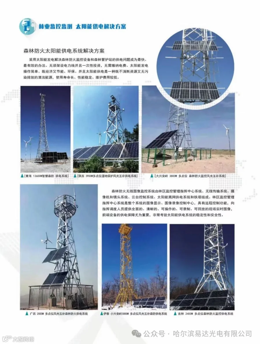 适用范围广:适用于各种林区的不同需求和应用场景,如林区内的瞭望台、监控设备、无线通信基站、应急救援设备、森林防火隔离带、灭火设备、野生动物保护设备和宣传设施等。