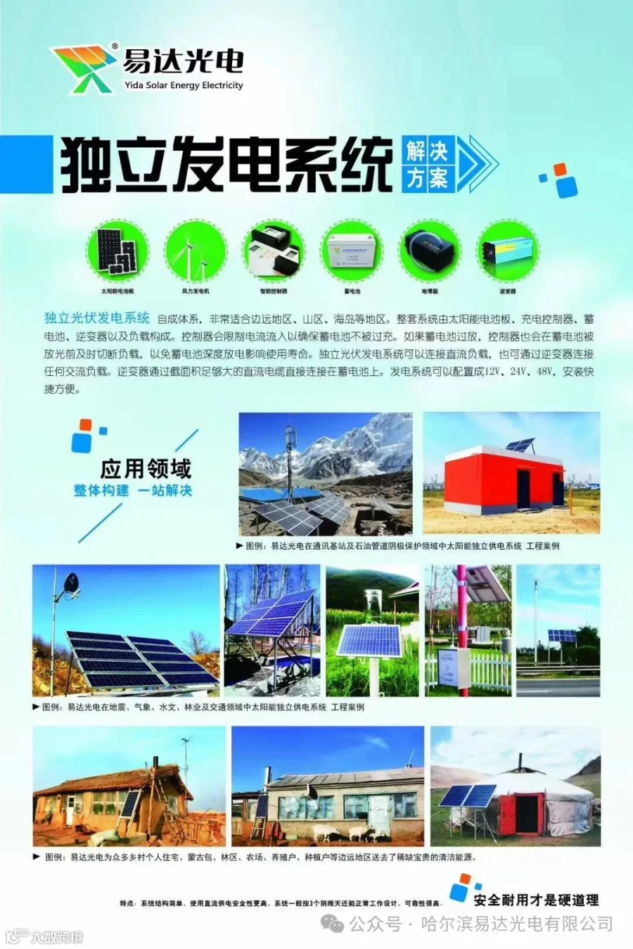 太阳能电池板:作为系统的核心部件,能够将太阳能转化为直流电能。通常采用高效率的单晶硅电池板,以获得更高的发电效率。
