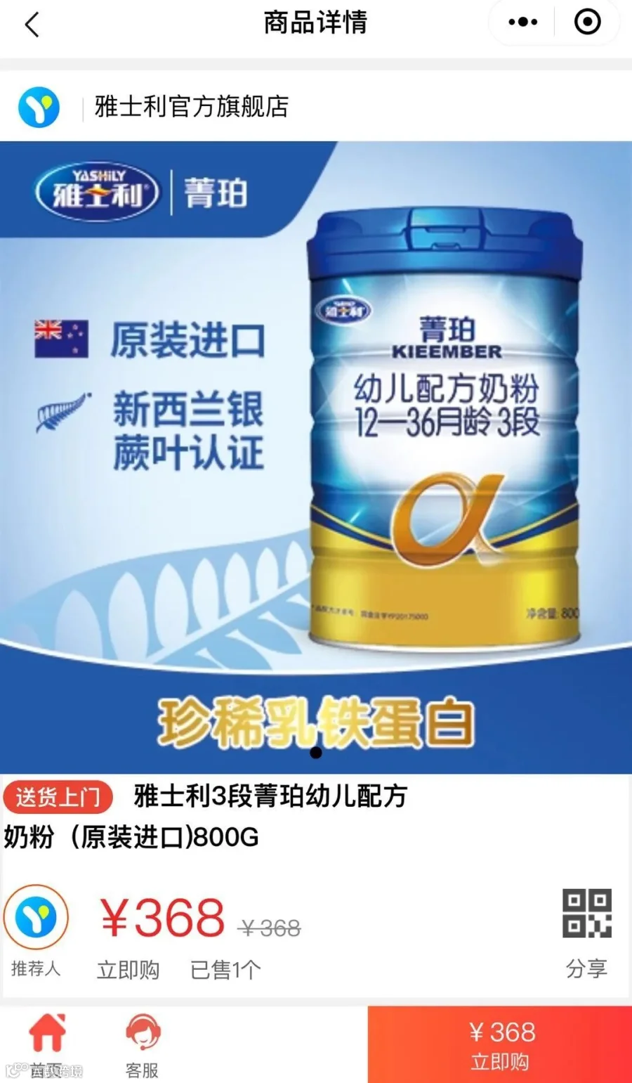 宝宝每天喝的雅士利菁珀快没了,能不能送货上门?