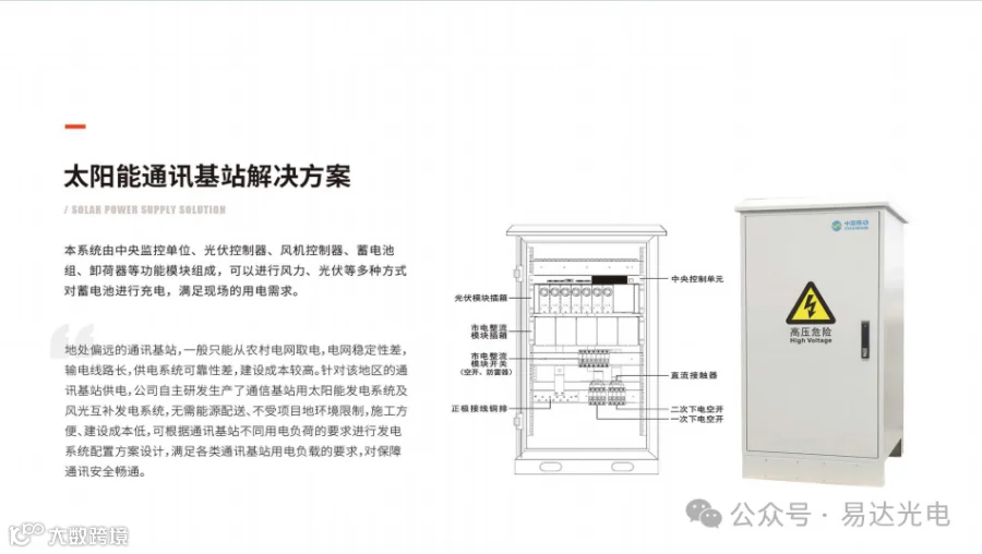 杭州易达光电有限公司专注太阳能光伏发电20多年,厂家直销太阳能发电设备,批发太阳能板,胶体电池,控制器,逆变器,光伏支架,太阳能路灯ups蓄电池,在全国东北辽吉黑西北新疆内蒙大区建立了本地化仓储运营,整体构建一站解决方案设计,快速交接。
