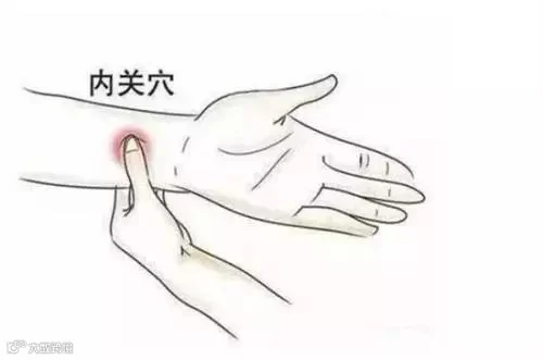 用左手拇指指尖按压右内关穴,按揉10~15分钟,每日2~3次; 再用右手以相同的方法按压左侧的内关穴,反复按揉即可。有宁心安神的疗效。