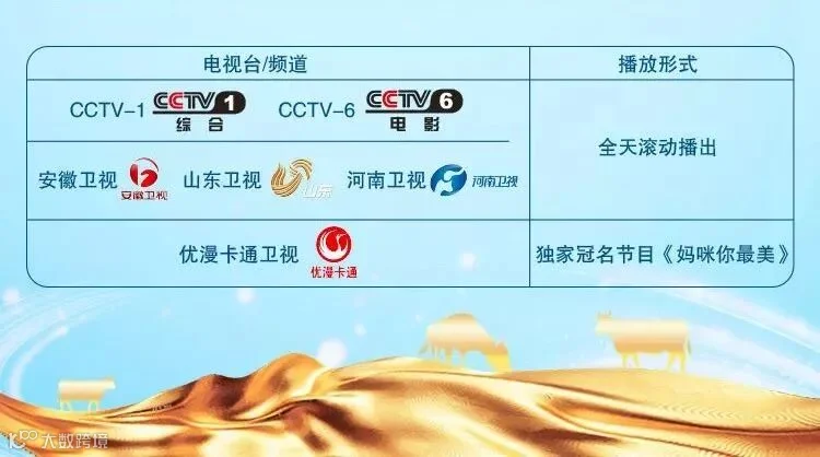 年末之际,雅士利国际各种广告加量投放,重磅来袭!CCTV-1、CCTV-6两大频道持续曝光,安徽卫视、山东卫视、河南卫视三大卫视全天覆盖,滚动播出。除此之外,各种节目赞助、户外大牌广告、公交车身广告、母婴垂直媒体深度合作也马力全开。