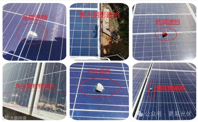 光伏组件面板上鸟粪较多,阵区没有安装驱鸟器,有可能会引发“热斑效应”,一串联支路中被遮蔽的太阳能组件,将被当做负载消耗其他有光照的太阳能组件所产生的能量发热,严重时热斑效应可导致电池局部烧毁,甚至造成整个太阳能组件的报废或重大火灾。