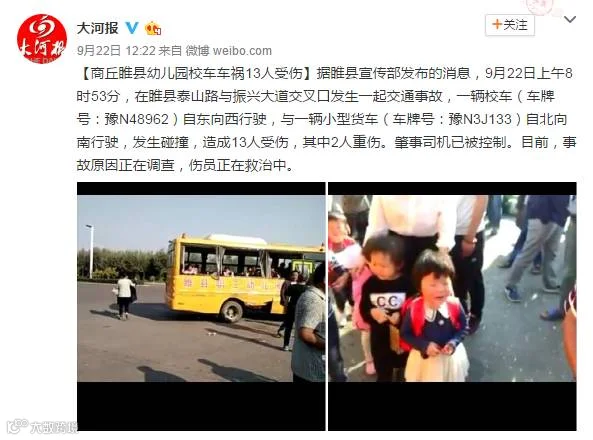 不久前商丘睢县一幼儿园校车与货车相撞,