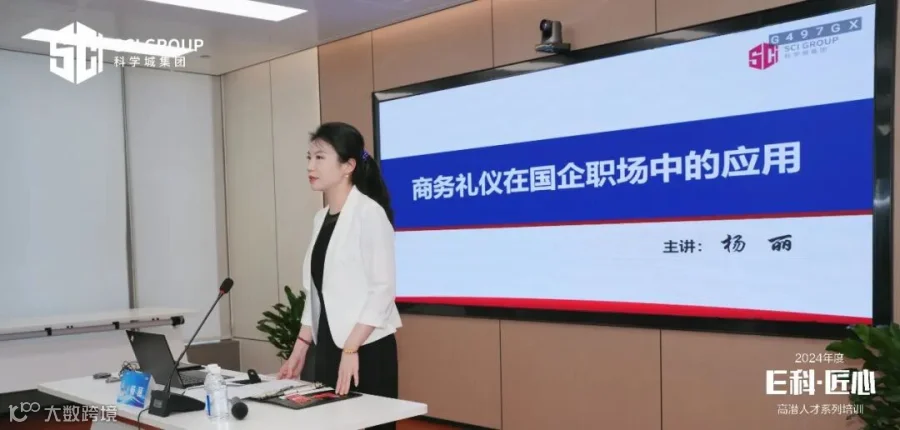 2024年8月9日,2024年科学城集团“E科·匠心”启航小匠训练营第七课在科学城科贤中心2楼会议室圆满开展,课程邀请了集团内训师特邀讲师杨丽讲授《商务礼仪在国企职场中的应用》课程,启航小匠学员约45人参加。活动由科瑞公司协办。