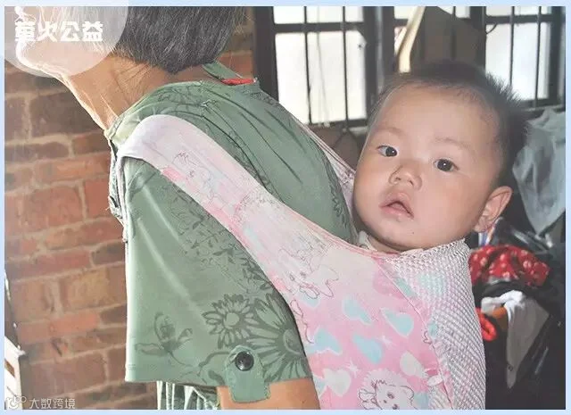 我们到家里时,看见瘦弱、背有点驼的奶奶背着老三,同时还照看着其他两个在床上玩耍的孩子。孩子的爸爸目前在
