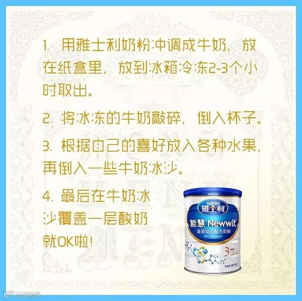 热到整个人都不好,要是阔以喝上一杯透心凉的饮料,该是多么爽的体验呀! 呆在家的麻麻不妨偷偷拿宝宝的奶粉DIY出冰爽可口的牛奶饮品。小雅已经准备把牛奶饮品的DIY秘籍上交 给我们的麻麻了!