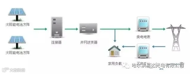 并网,就是必须连接到公共电网,就是太阳能发电、家庭电网、公共电网联系在一起了,这是必须依赖现有电网才能运行的发电系统。