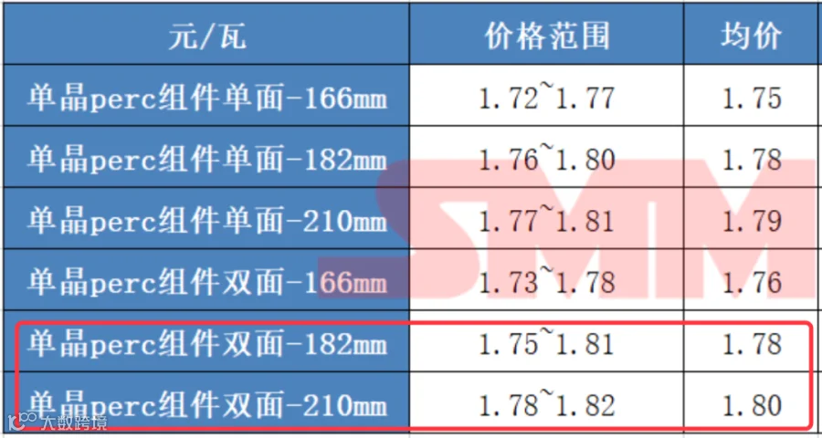 上周电池片已经追随上游硅片涨势,成交价格相应抬升,电池片主流价格已来到每瓦1.00-1.03元/瓦左右。