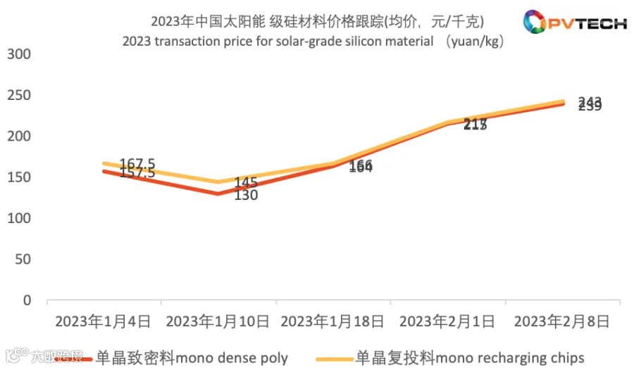 Infolink表示,由于供应链波动尚未底定,2-3月价格预判有机会暂时稳定在每瓦1.75-1.8元人民币,但若想涨回1.8元以上终端接受度不高。