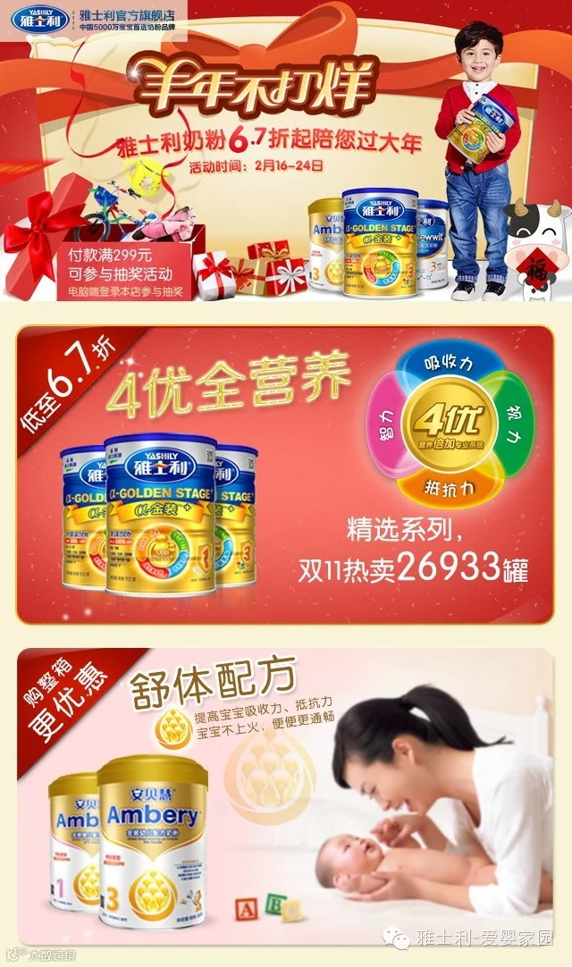 上次年货节,小雅任性了!这次羊年将至,2月16日-26日,雅士利奶粉6.7折起陪你过大年!