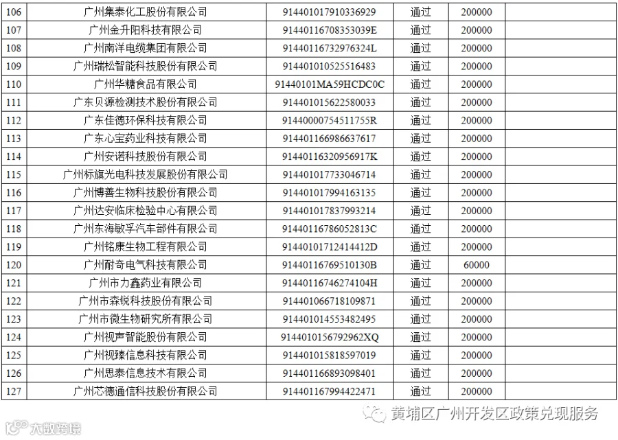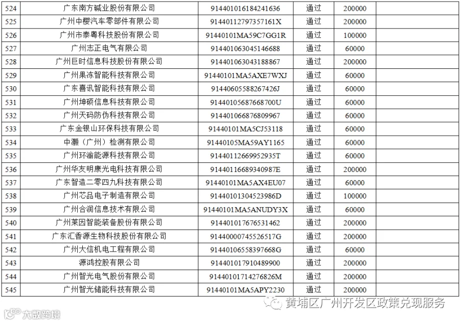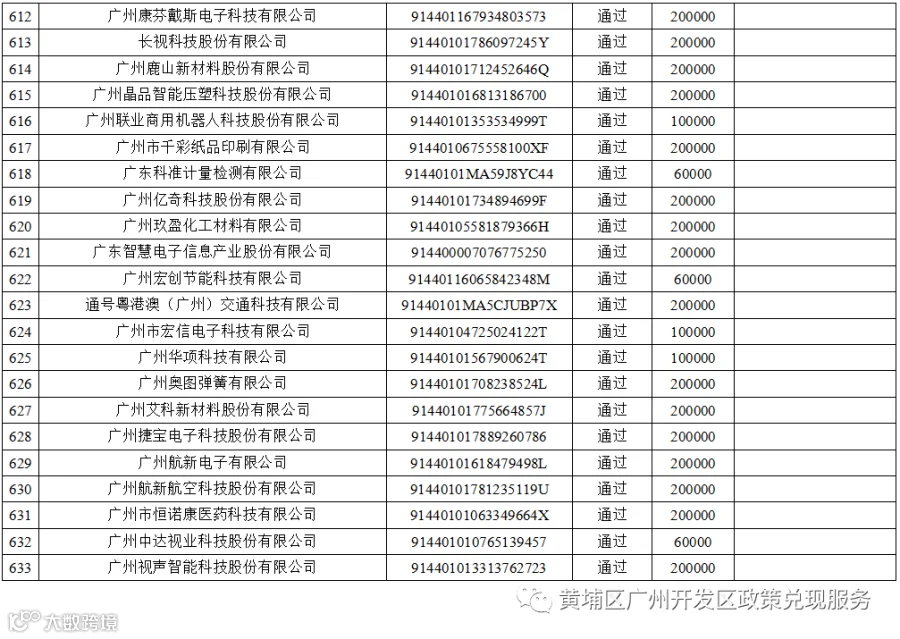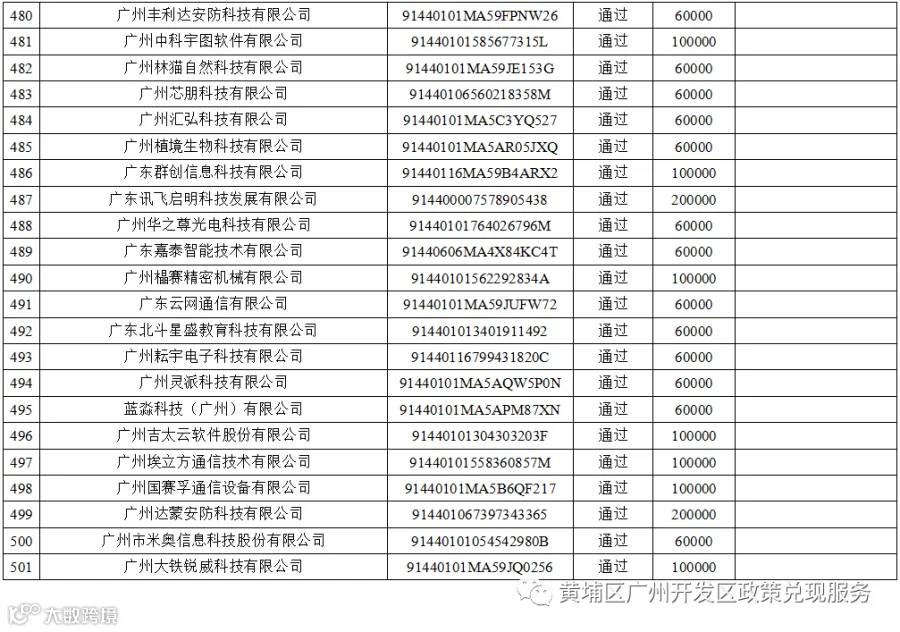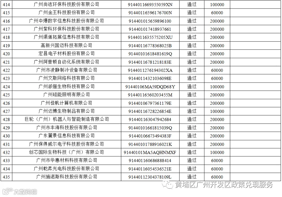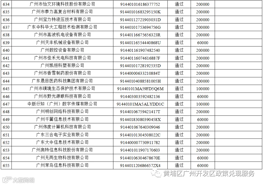 根据《广州市科技创新委员会关于印发广州市高新技术企业树标提质行动方案(2018—2020年)的通知》(穗科创规字〔2018〕1号)、《广州市黄埔区、广州开发区、广州高新区进一步促进高新技术产业发展办法》(穗埔府规〔2020〕4号)的规定,现对2020年高新技术企业认定通过奖励第一年区级经费审核结果予以公示(见附件)。