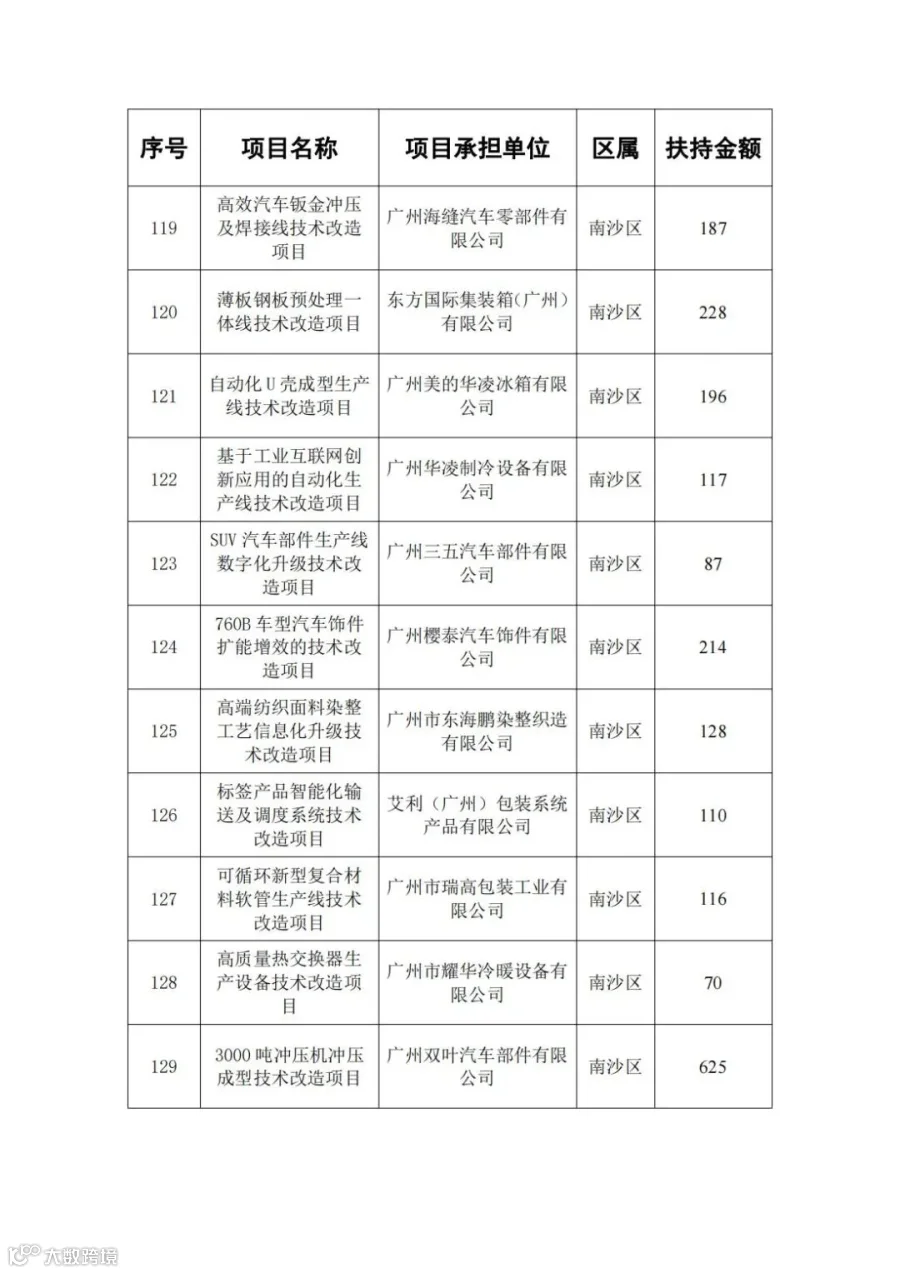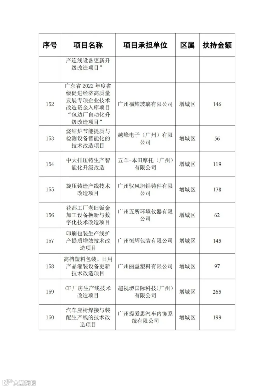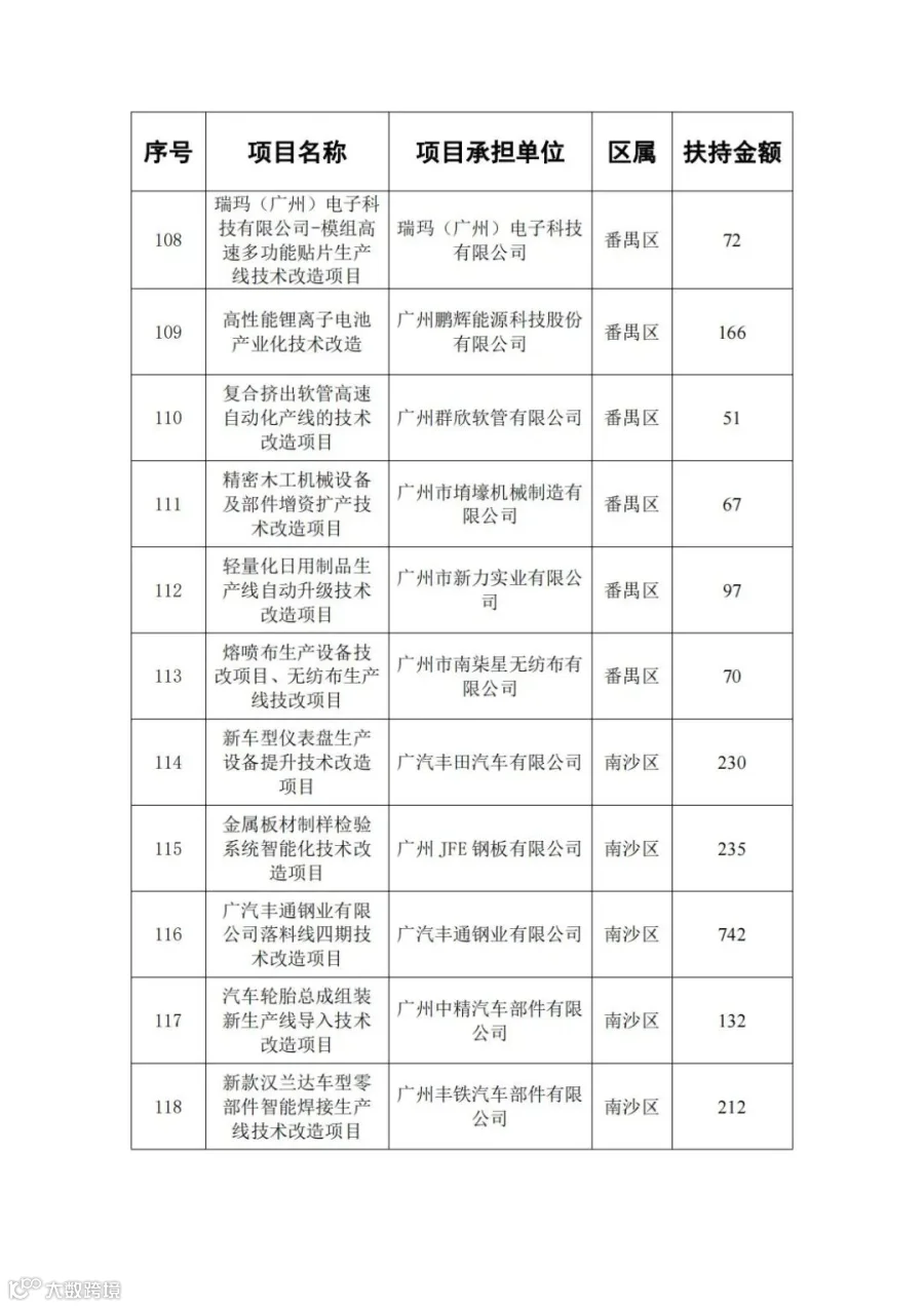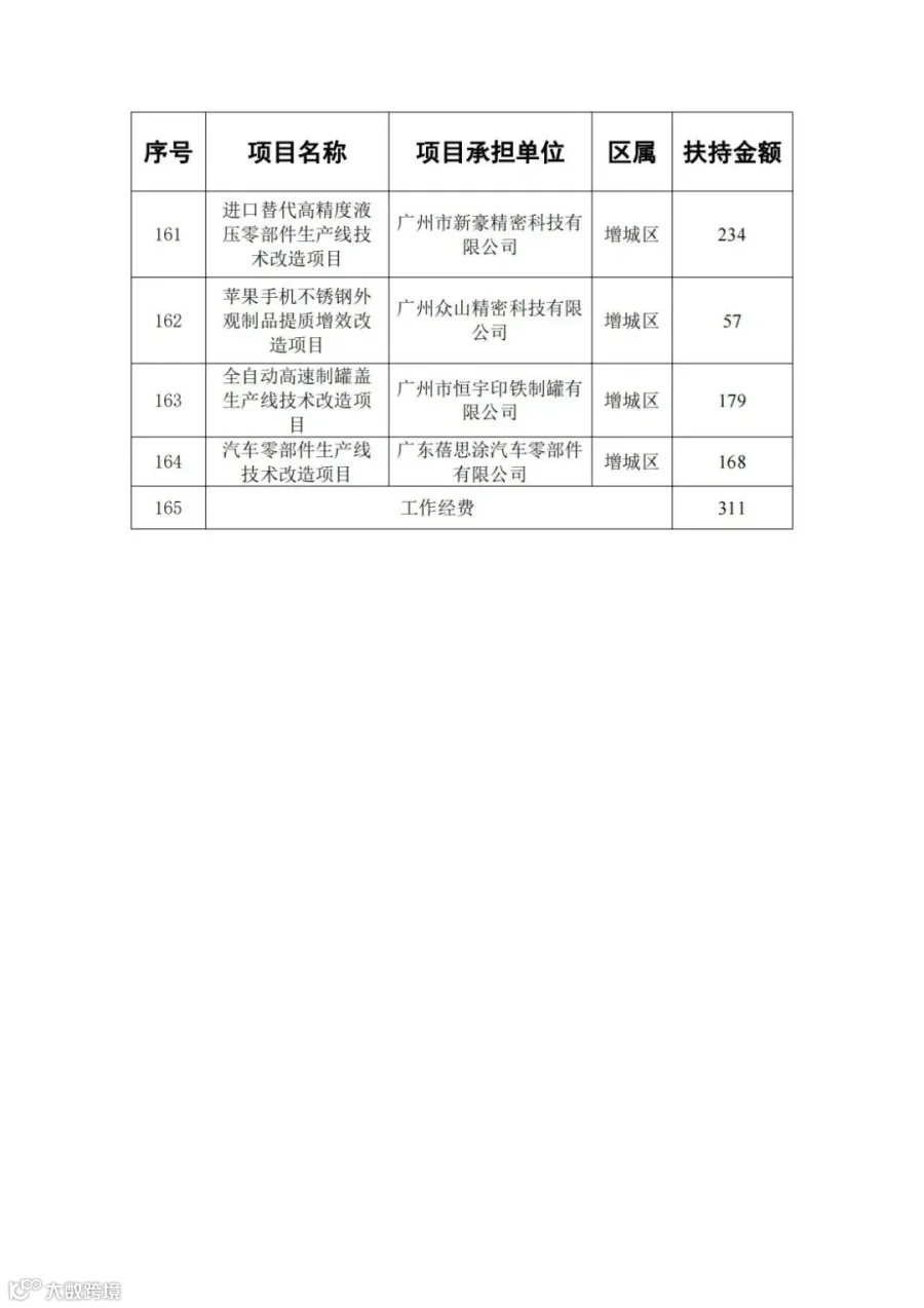 广东省省级先进制造业发展专项资金(普惠性制造业投资奖励)支持项目