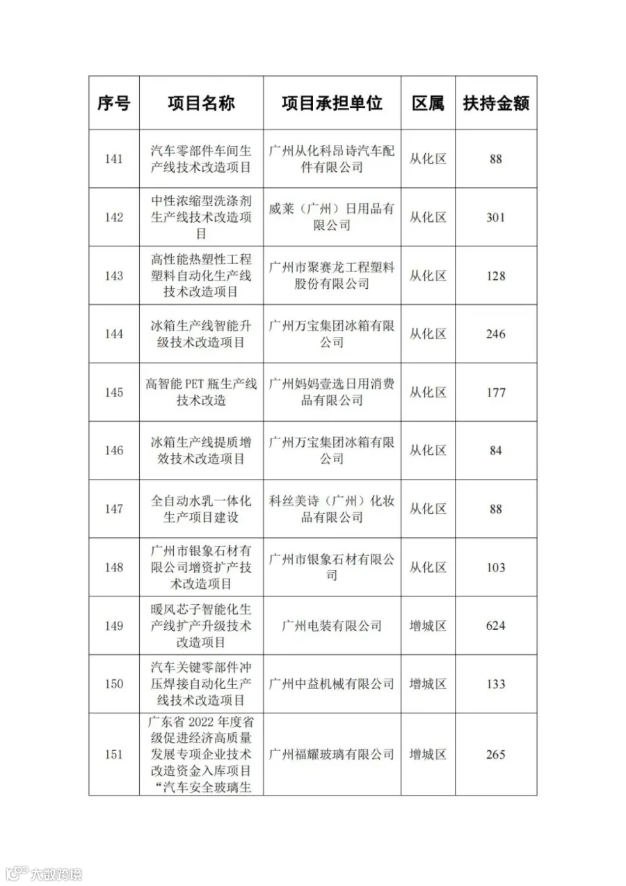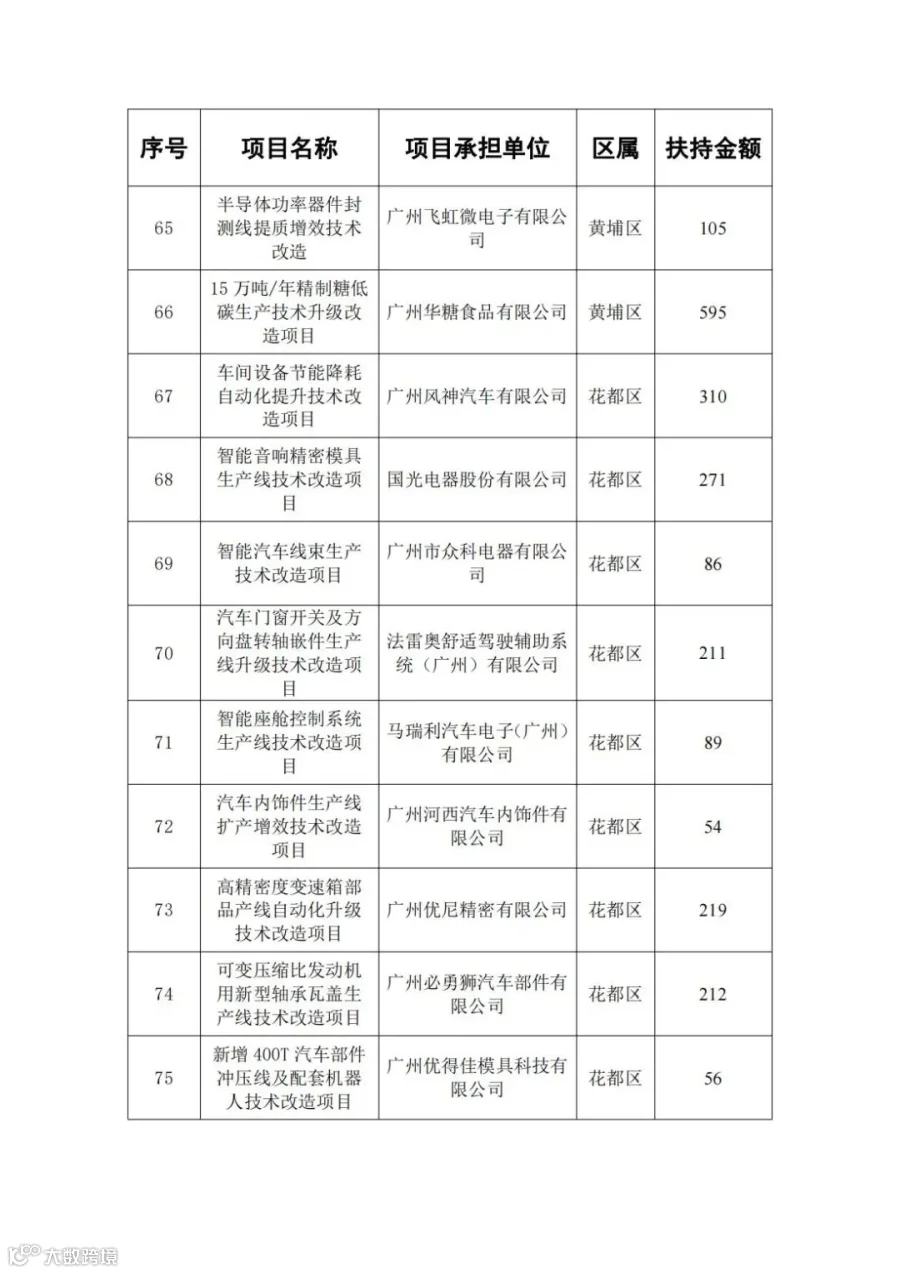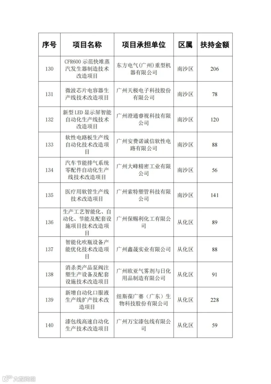 广东省省级先进制造业发展专项资金(普惠性制造业投资奖励)支持项目